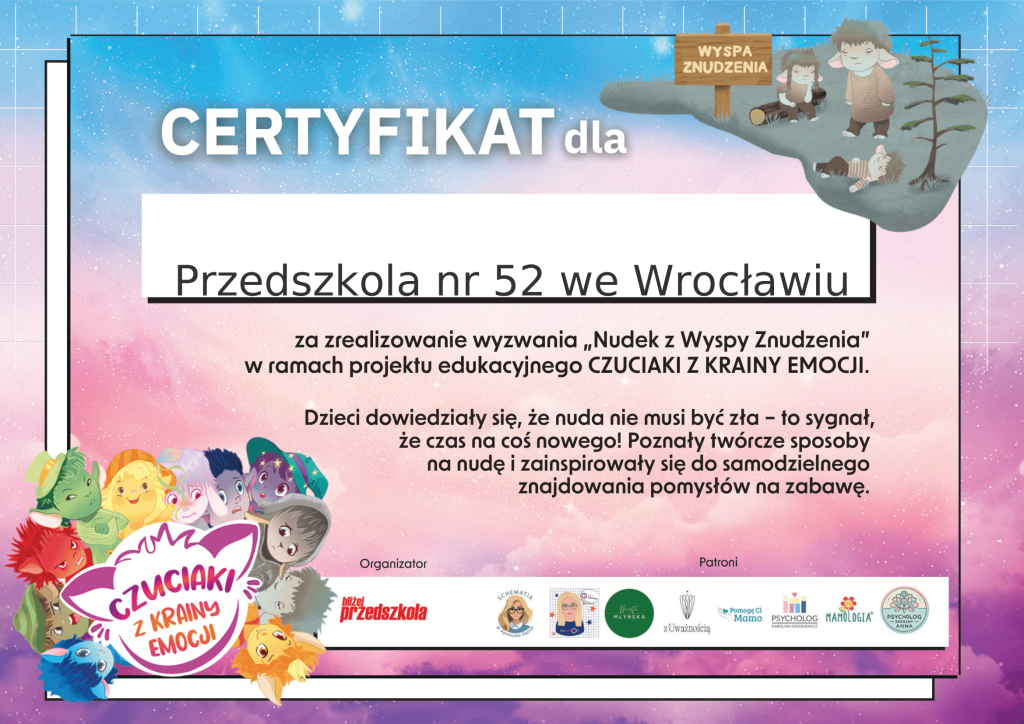 Czytaj więcej Realizacja modułu projektu „Czuciaki z Krainy Emocji” – Nudek z Wyspy Znudzenia